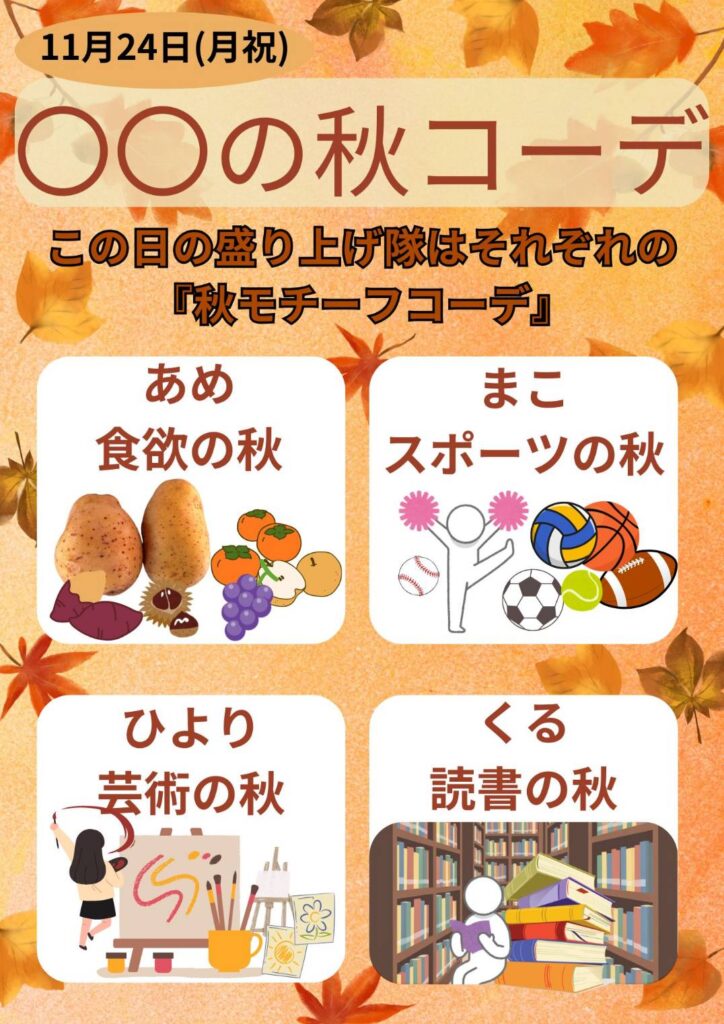 みんなで楽しめる話題や盛り上げ隊に聞いてみたいこと、秋や冬のお題まで沢山受付ます!!