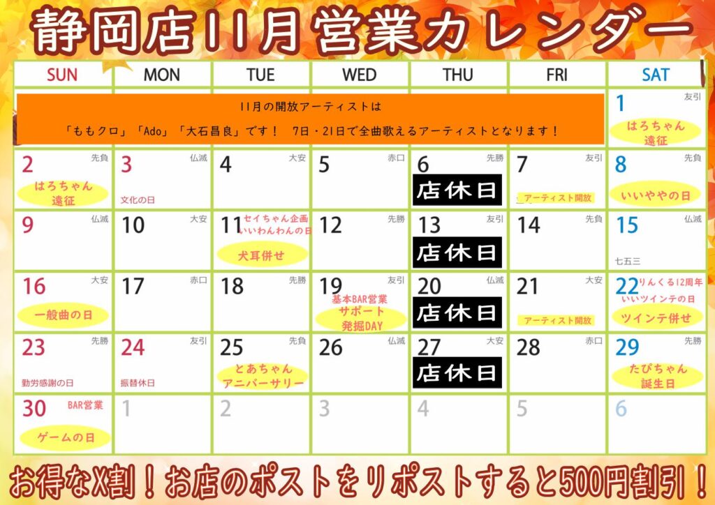 【静岡店】🍠🍂11月イベントカレンダー🍂🍠
