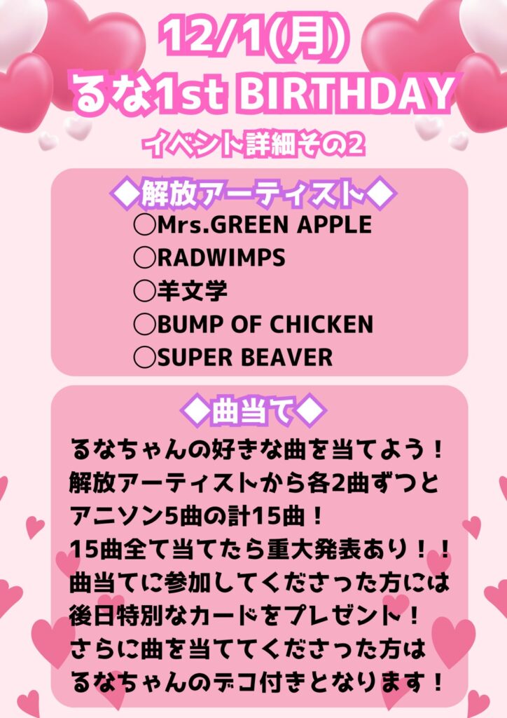 みなさーん!るなちゃんのりんくるで迎える初のバースデーイベントですよー!!!!!