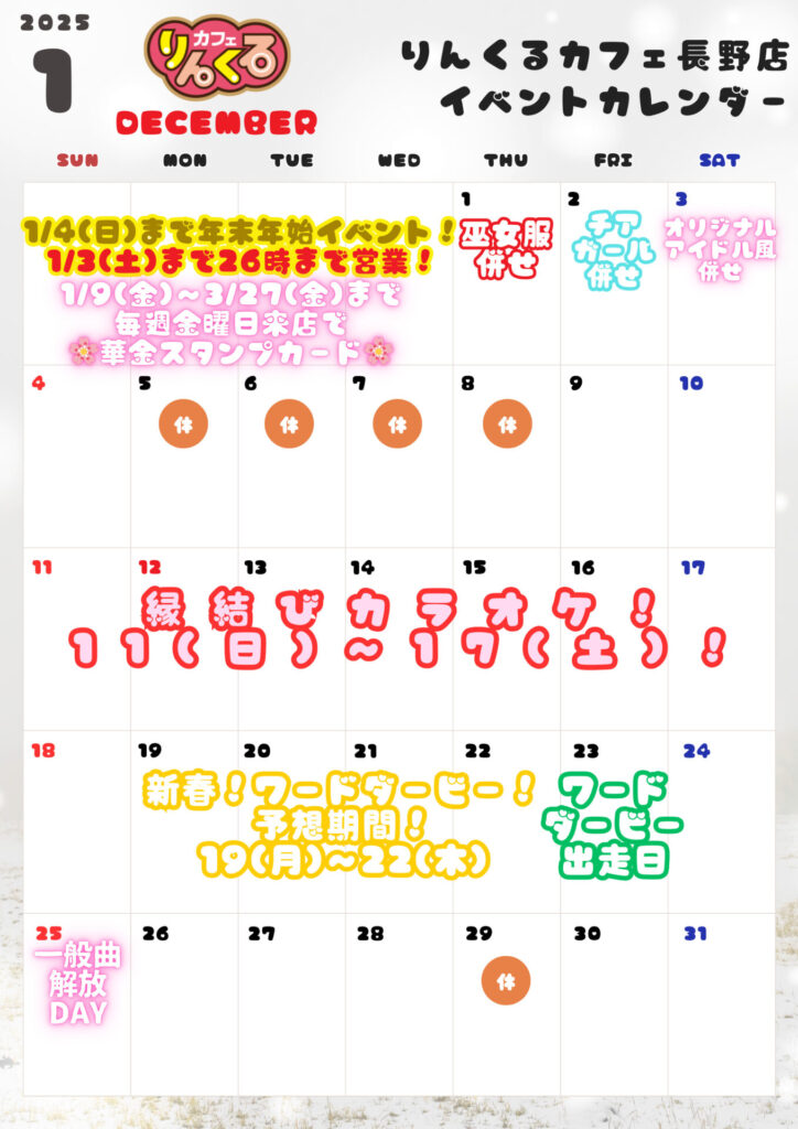 1月は華金スタンプカードや縁結びカラオケ、ワードダービーなど、初の試みやお正月にちなんだイベントがたくさん!