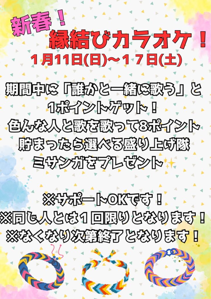 ■11日(日)〜17日(土):縁結びカラオケ!