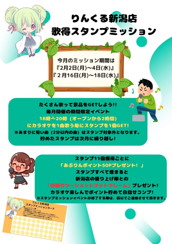 のこの時間にカラオケを1曲歌う毎にスタンプを1個GET!