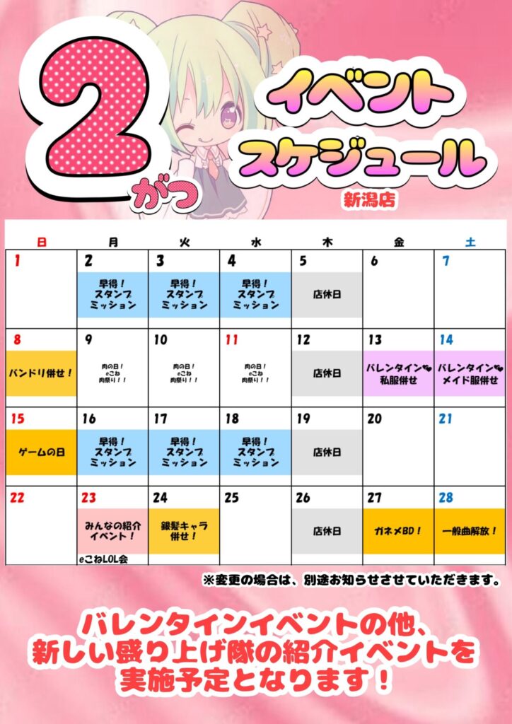 【新潟店】2月スケジュールッ!!