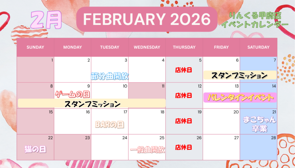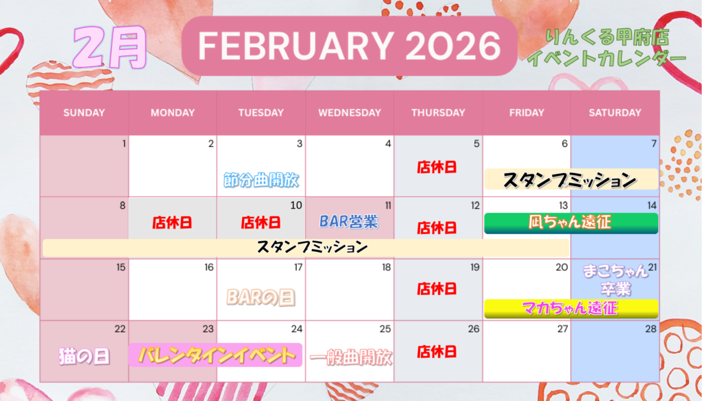 【甲府店】2月イベントカレンダー