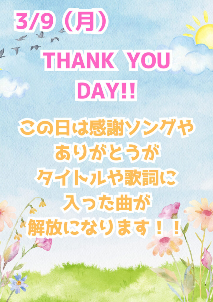 39の日!ということでこの日は感謝ソングやありがとうが曲名や歌詞に入った曲が解放となります!