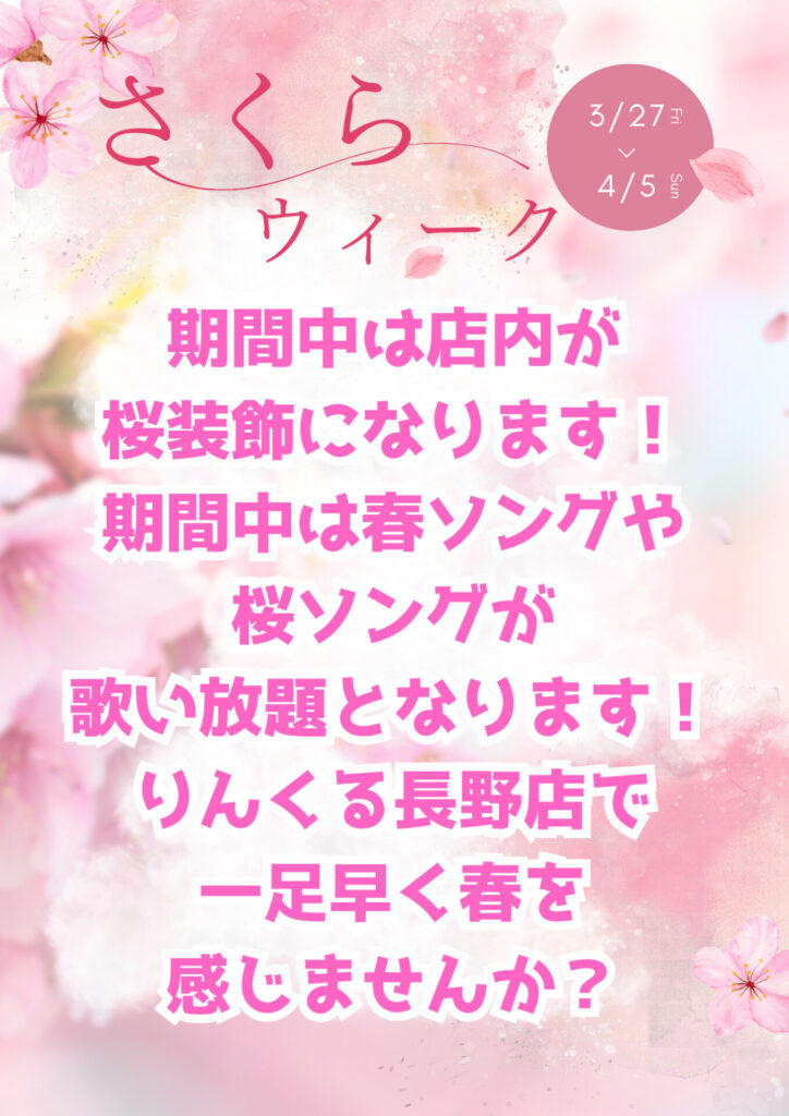 期間中は店内が桜装飾になります!また、春ソングや桜ソングが歌い放題となります!