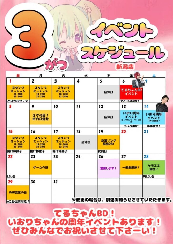 【新潟店】3月スケジュール♪
