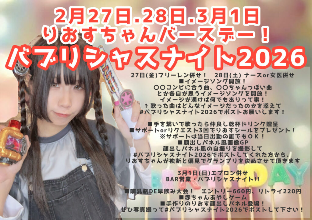 ☆★☆彡 1日(日)りおすちゃんBirthday最終日・BAR営業