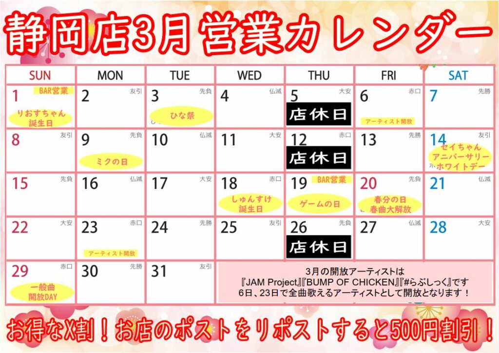 りんくるカフェ静岡店3月の営業予定はこちらです!