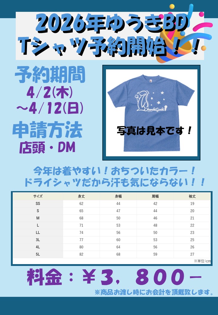 ・2026年ゆうきBD、’Tシャツ販売開始