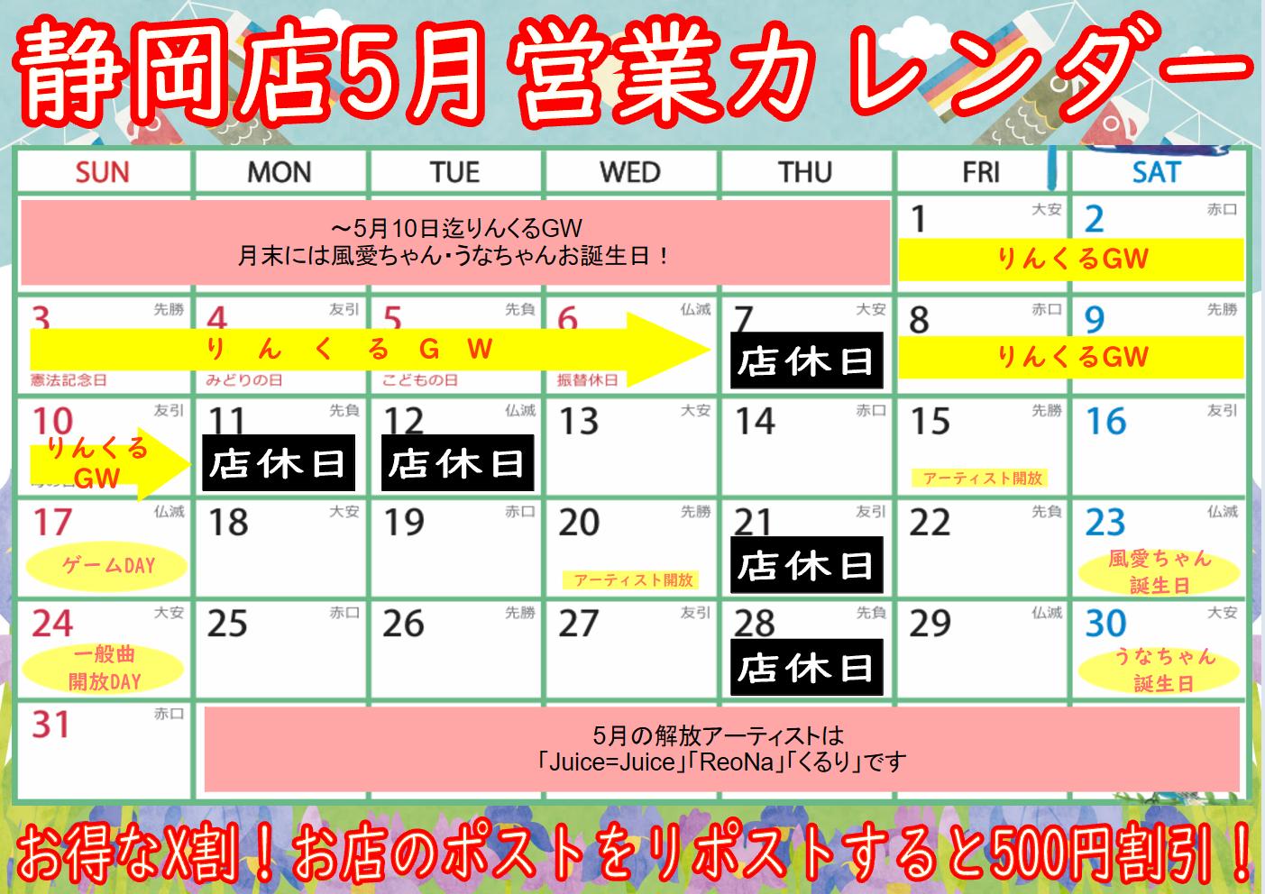 【静岡店】🎏5月イベントカレンダー🎏