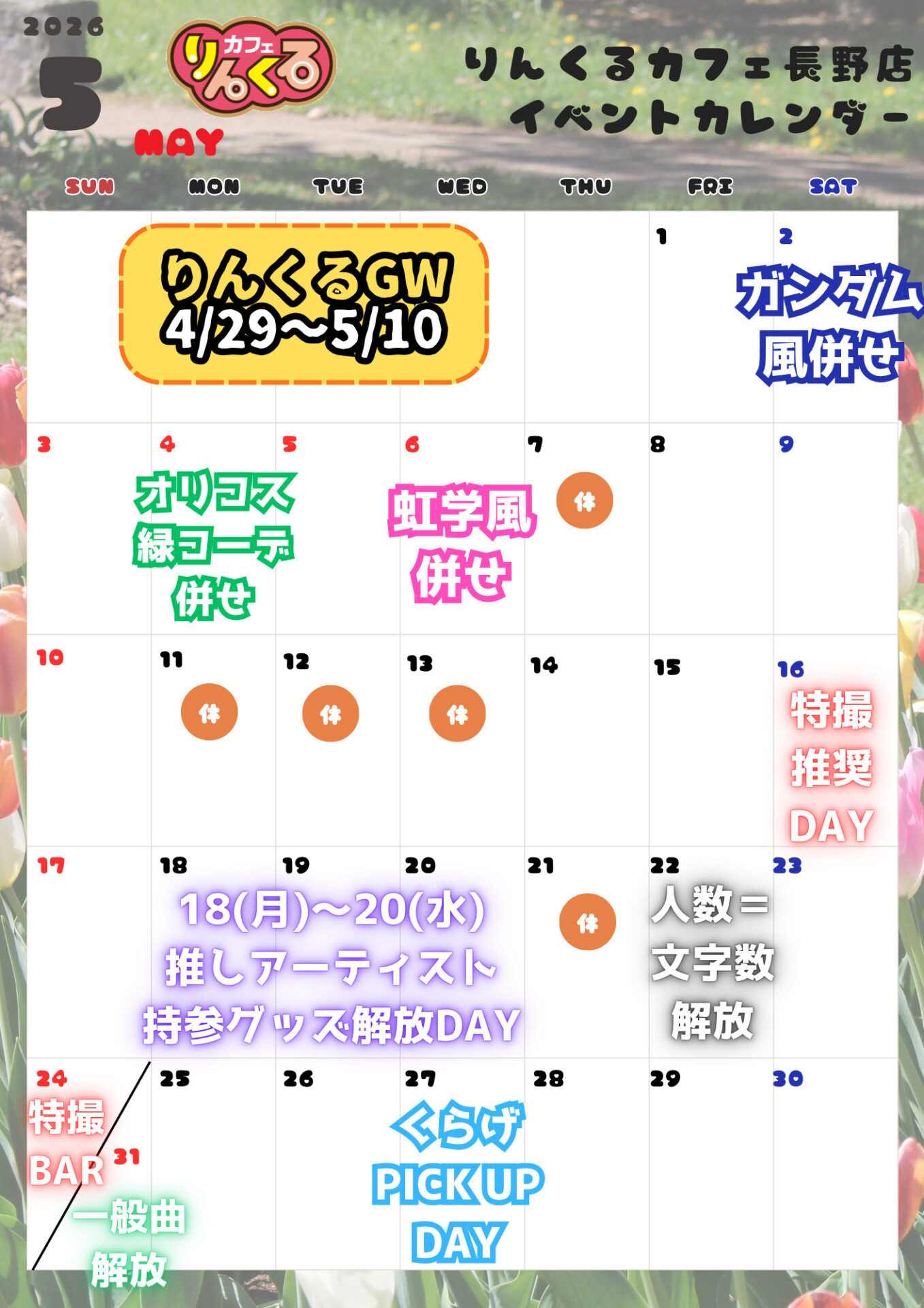 5月はGWイベントから始まり、推奨DAYや解放DAY、盛り上げ隊PICK UPイベントなどを実施!!
