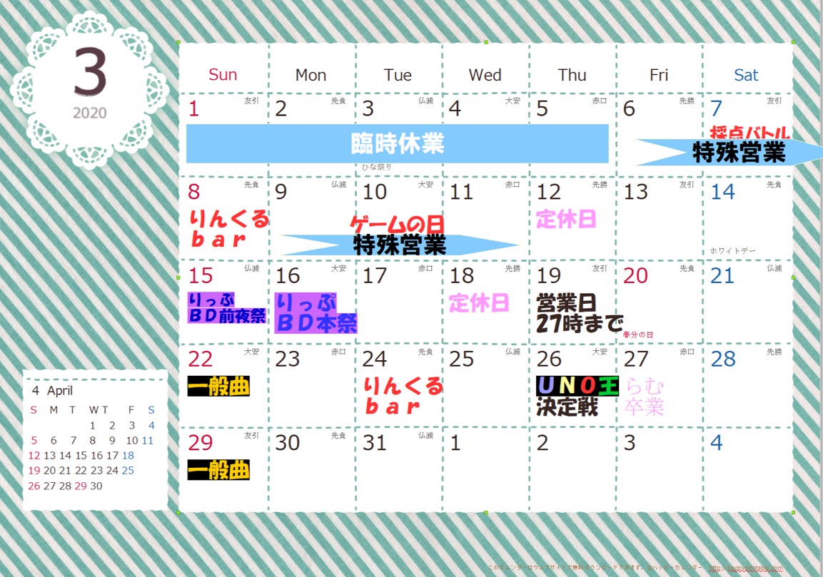 特殊営業や誕生日・卒業イベントなどもあるので要チェック!!