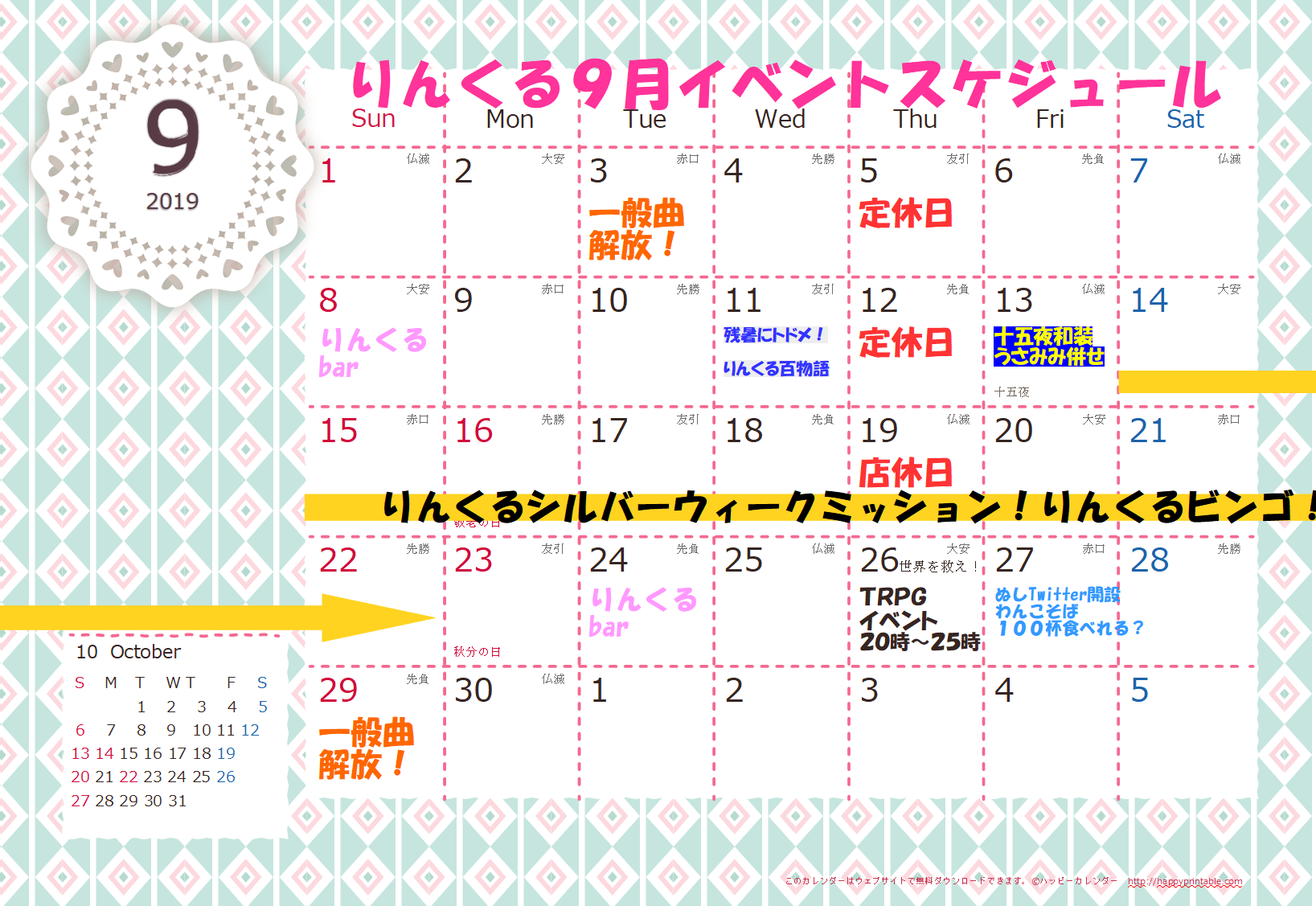 りんくるシルバーウィークミッション!りんくるビンゴ!