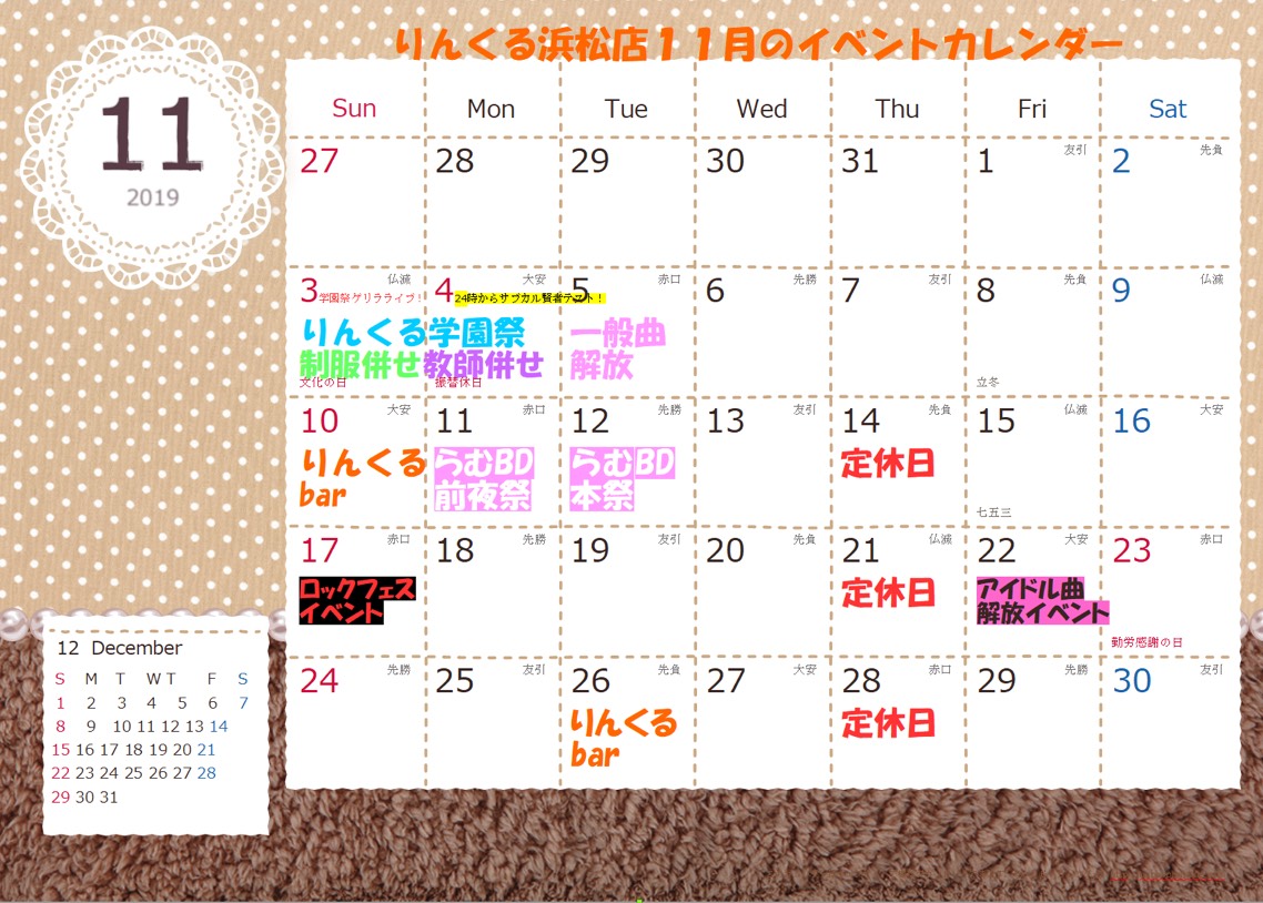 浜松店【11月のイベントと定休日のご案内】