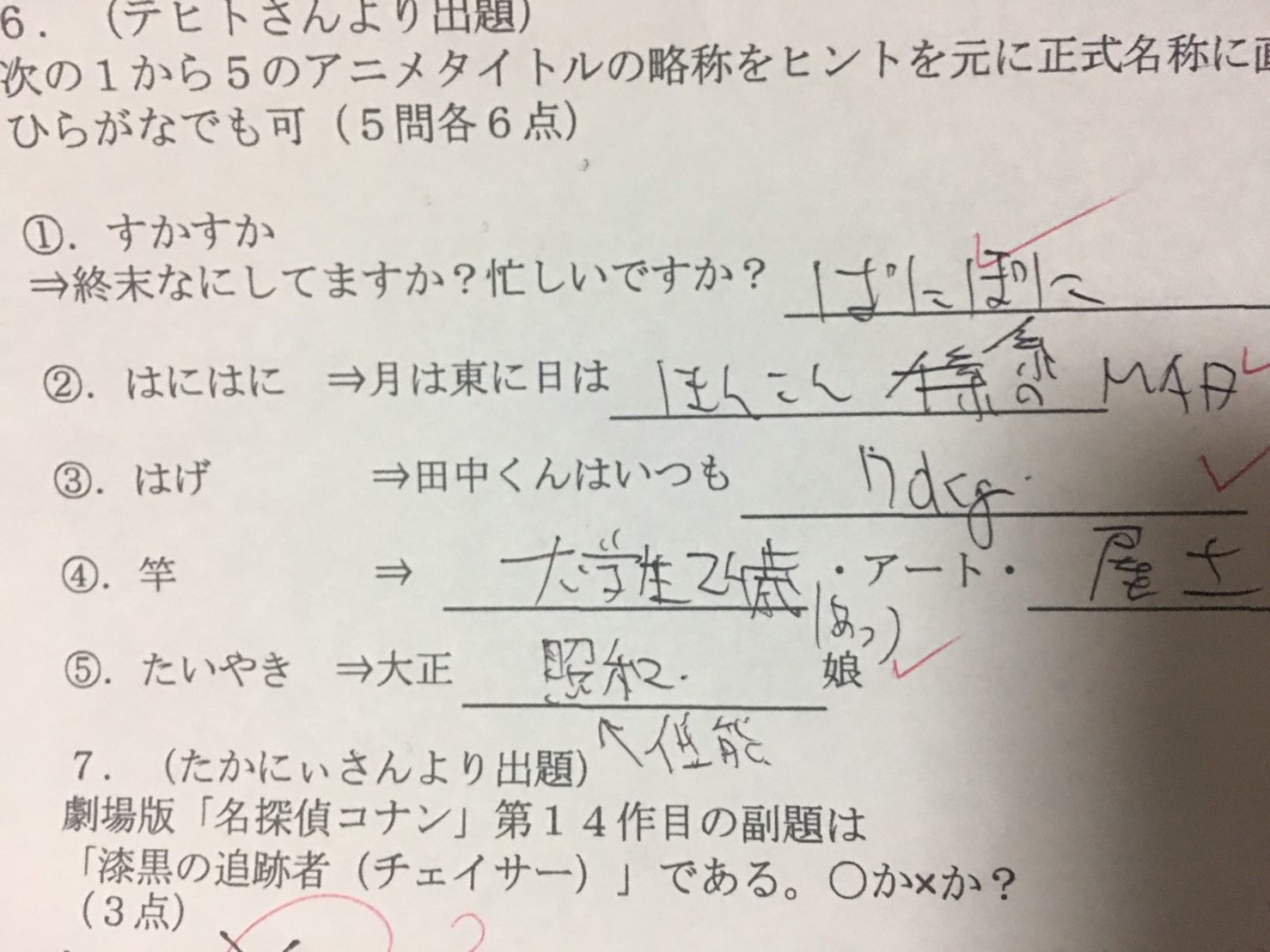 11月4日に行われたサブカル賢者テスト珍解答!