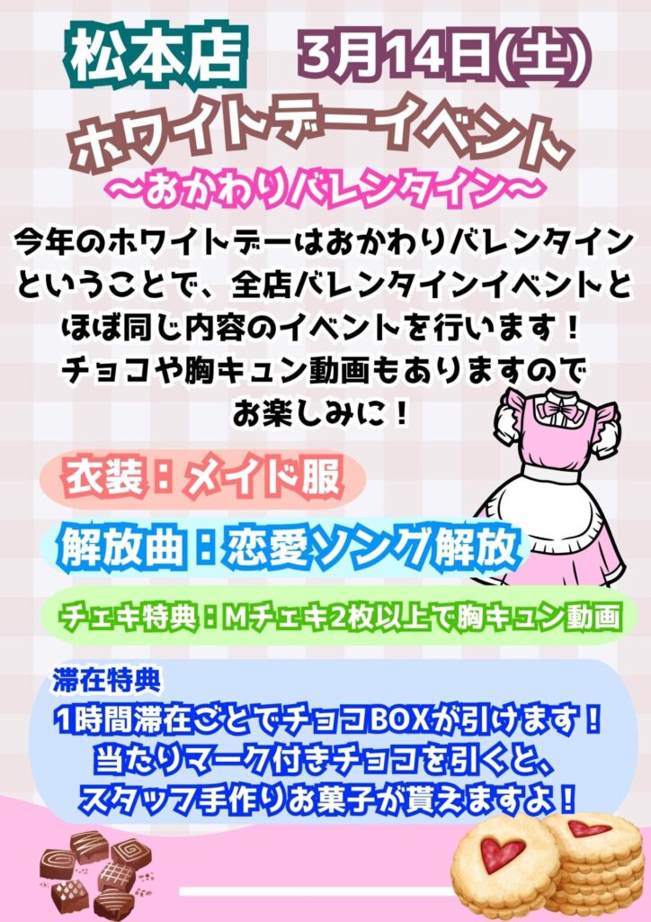 今年のホワイトデーはおかわりバレンタインということで、全店バレンタインイベントとほぼ同じ内容のイベントを行います!