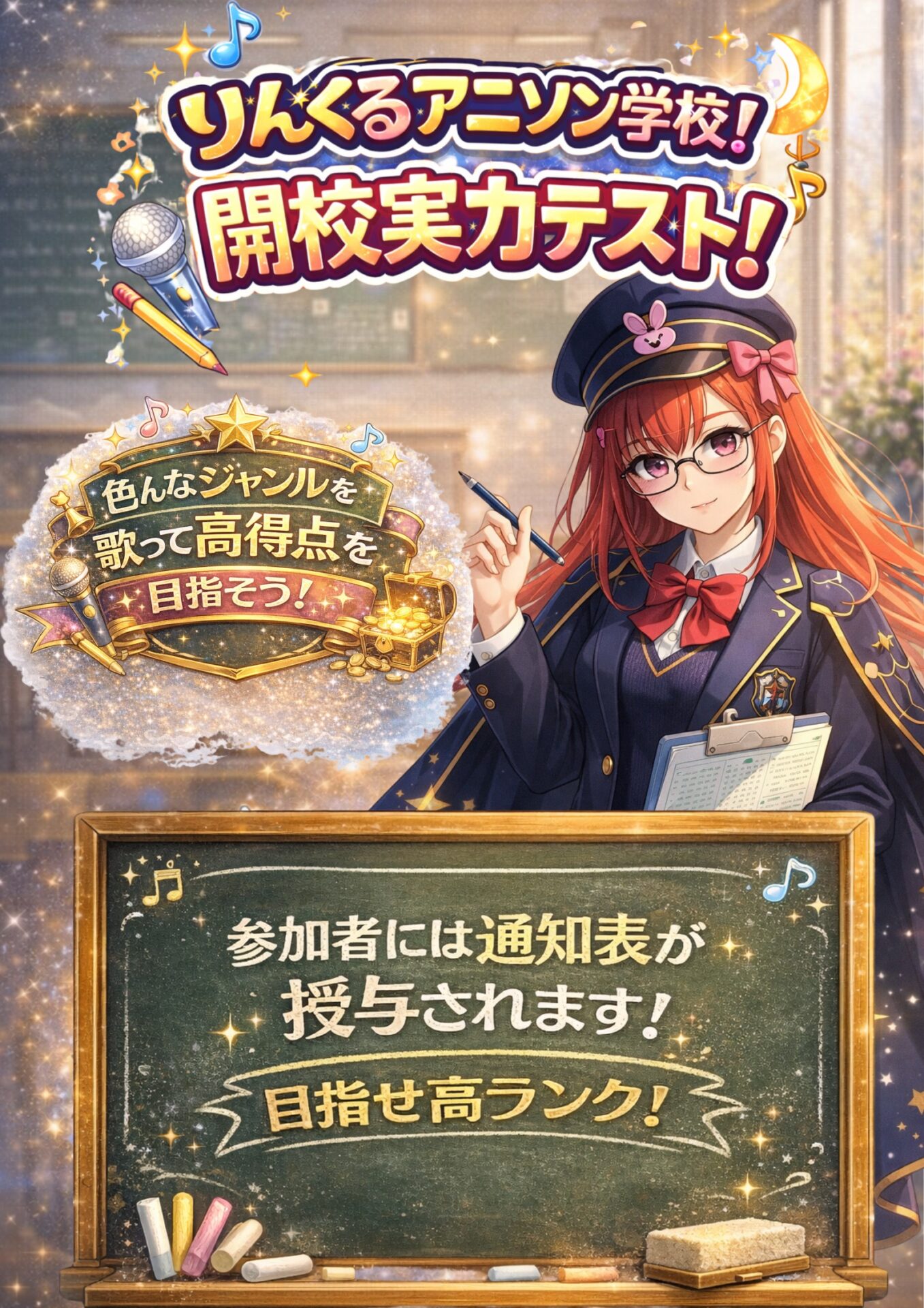 ■18日㈪~24日㈰:りんくるアニソン学校!開校実力テスト!